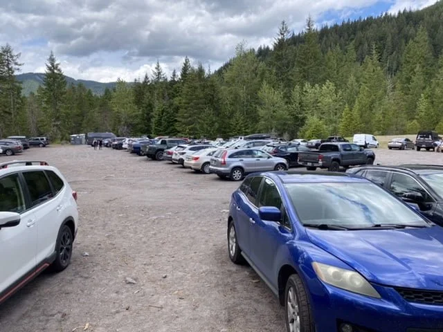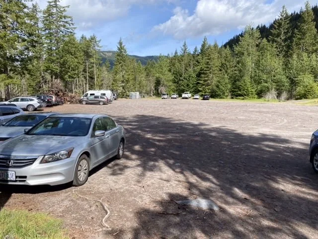 The trailhead is at the end of the Muddy Fork Road. There is a large parking lot that can accommodate around 50 cars. However, this is a very busy trail and the parking lot fills up pretty quickly at weekends. There are portable restrooms and trash cans in the parking lot.