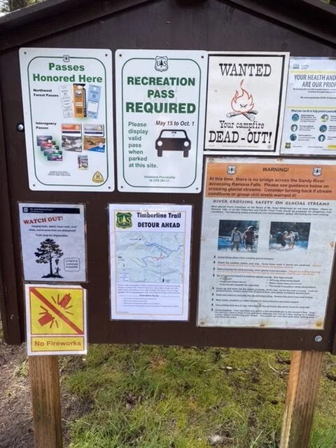 The parking lot requires a usage fee – a Northwest Forest Pass works very well. Note that the USFS has officially rerouted the Timberline Trail in this area onto the PCT. The trail from the trailhead follows the Sandy River for the first 1 1/4. It’s clear that the windstorm from last September has also downed many trees along the trail. The Forest Service has done a great job in clearing the trail. The only real challenge in this hike is crossing the Sandy River.