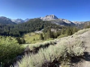 We were eager to leave our camp spot; cold and mosquitoe ridden. Today we had an opportunity to make it to Reds Meadow – another resort property where we could get food and a shower. This would be helped by a relatively long descent, most of it through light forest, which makes the going good underfoot.