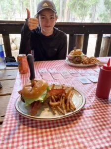 We hurried so we could be at VVR for lunch. Vermilion Valley Resort, on the side of Lake Edison, is a common hiker stopping point on the trail. It was an opportunity to have a shower, launder clothes and have real food (and beer). We arrived just in time for lunch. All the food was excellent. We met many other hikers and had fun exchanging stories. Getting clean was super refreshing after 11 days on the trail!